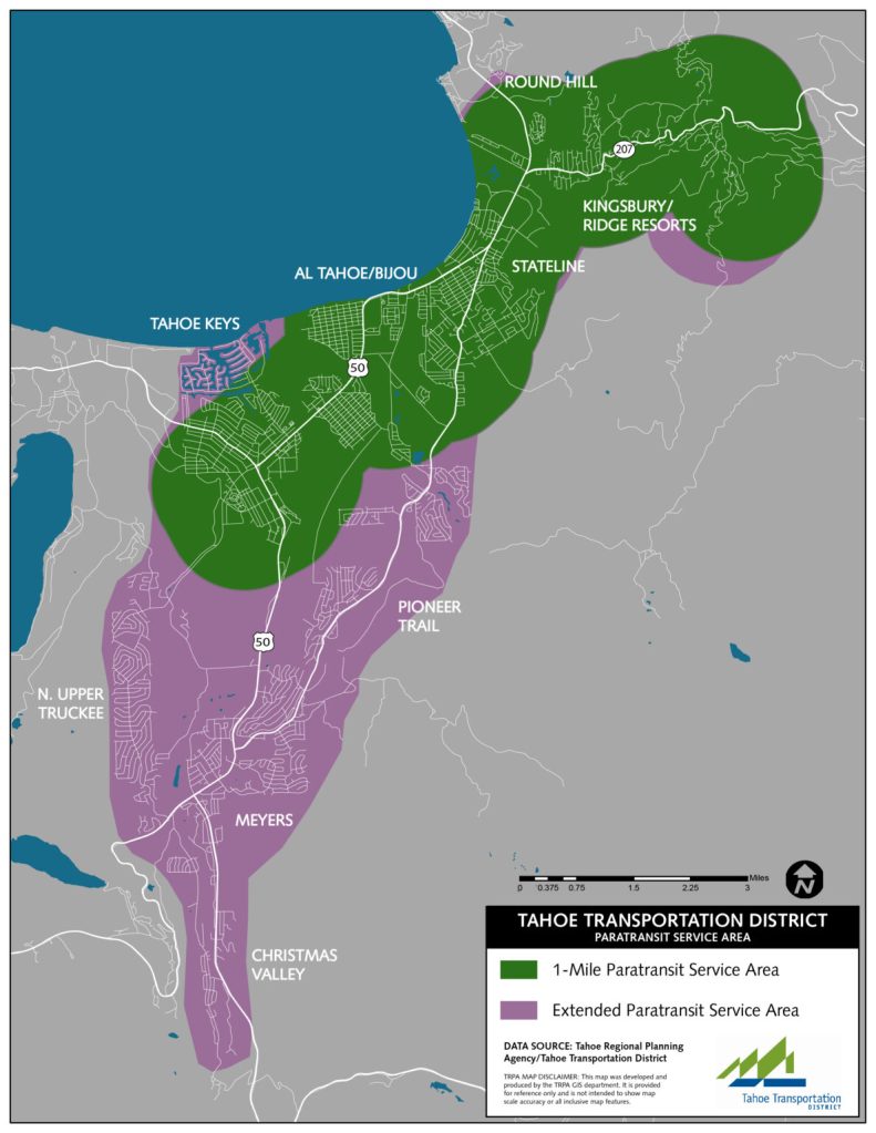 To obtain a ride schedule, please visit the Tahoe Transportation District website, here, or call 530-541-7149.