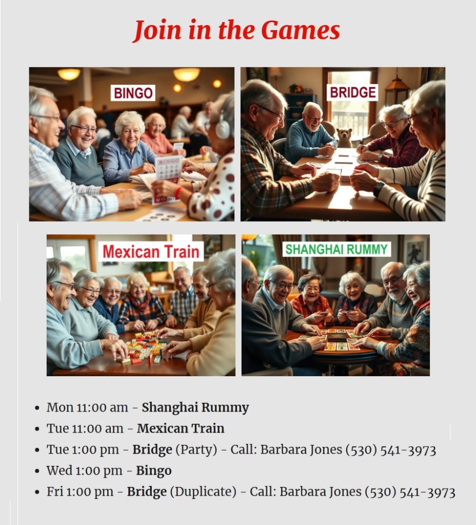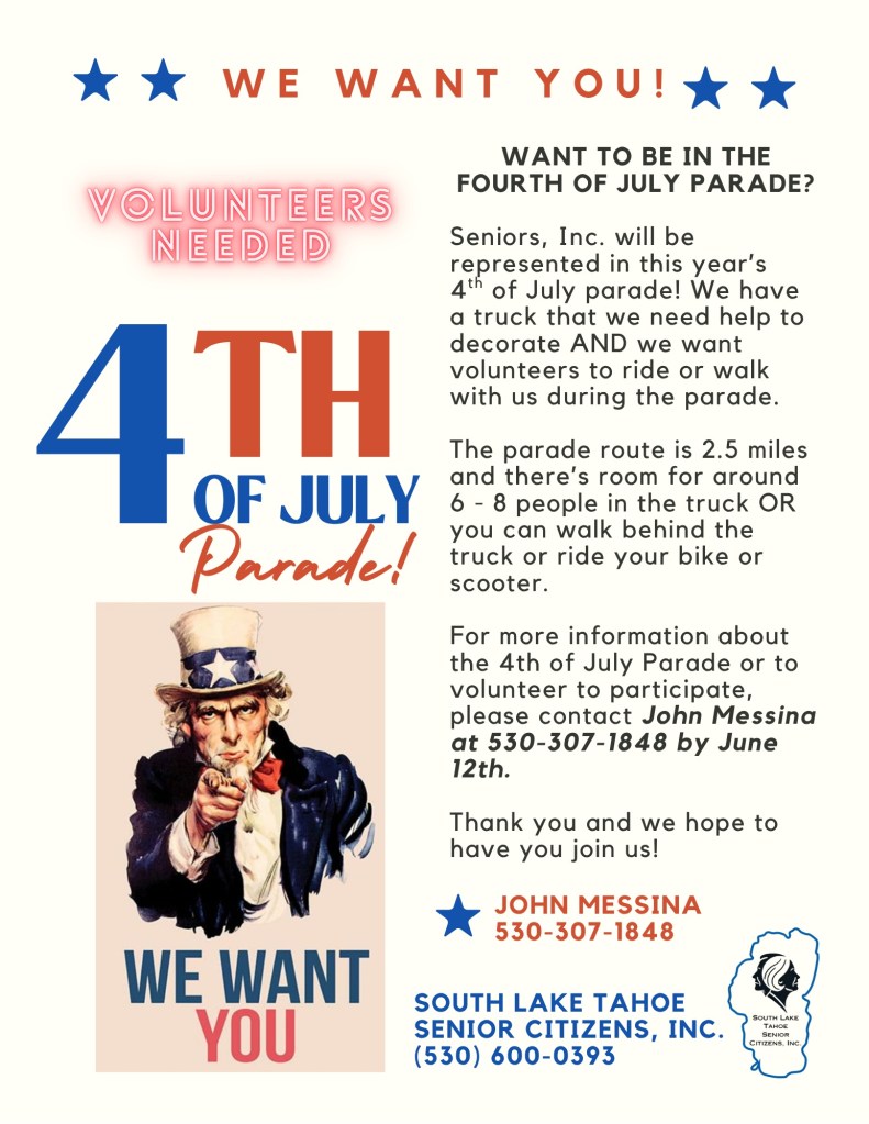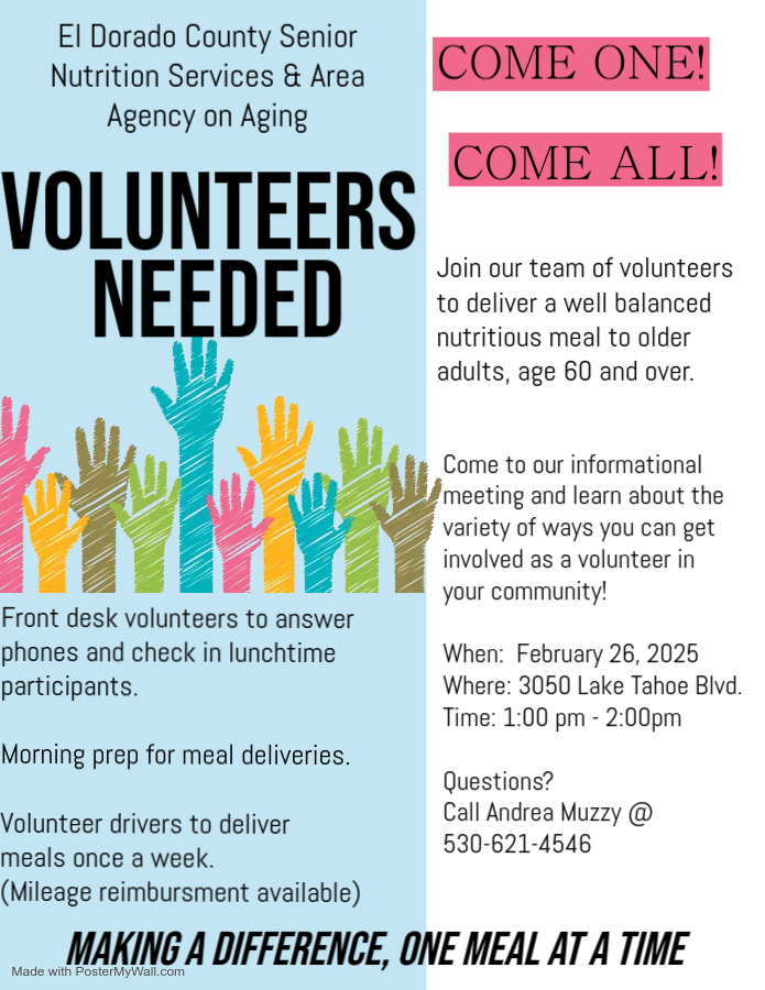 - Contact Lake Tahoe Seniors (www.TahoeSenior.com)